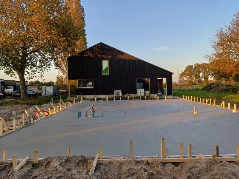 25 oktober: Een week later dan gepland is de fundering gelegd en de betonvloer gestort...