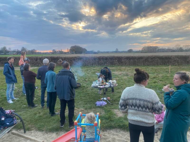 De jaarlijkse buurtbarbecue, georganiseerd door het Buurtschap Noord Oost, vindt plaats bij onze achterburen van Groot Nijhof. We ontmoeten er veel buurtgenoten. Ook hier veel belangstelling voor ons project.