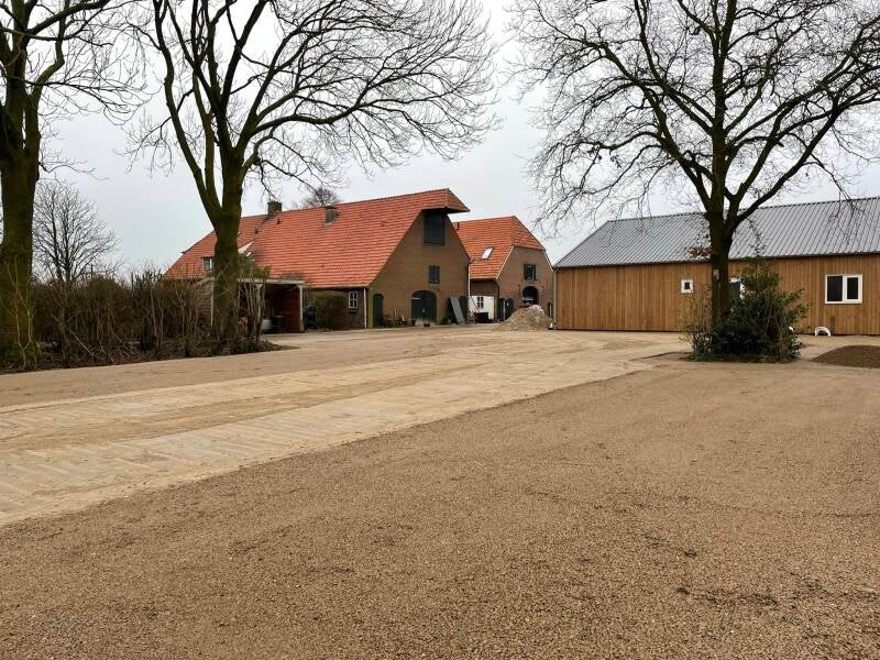 Het nieuwe jaar gaat vliegend van start. Direct na de kerstvakantie begint ons vaste grondverzetbedrijf De Covik met de aanleg van de parkeerplaats achter de gemeenschappelijke schuur. Op de parkeerplaats worden de oude mestroosters van de ligboxenstal en de andere schuren gebruikt. Een mooi hergebruik! In 2 weken tijd is de parkeerplaats af. Het is prachtig geworden en we zijn er heel blij mee. Het is dankzij de subsidie SteenGoed Benutten van de Provincie Gelderland dat we deze parkeerplaats, goed voor 16 plekken, kunnen realiseren.